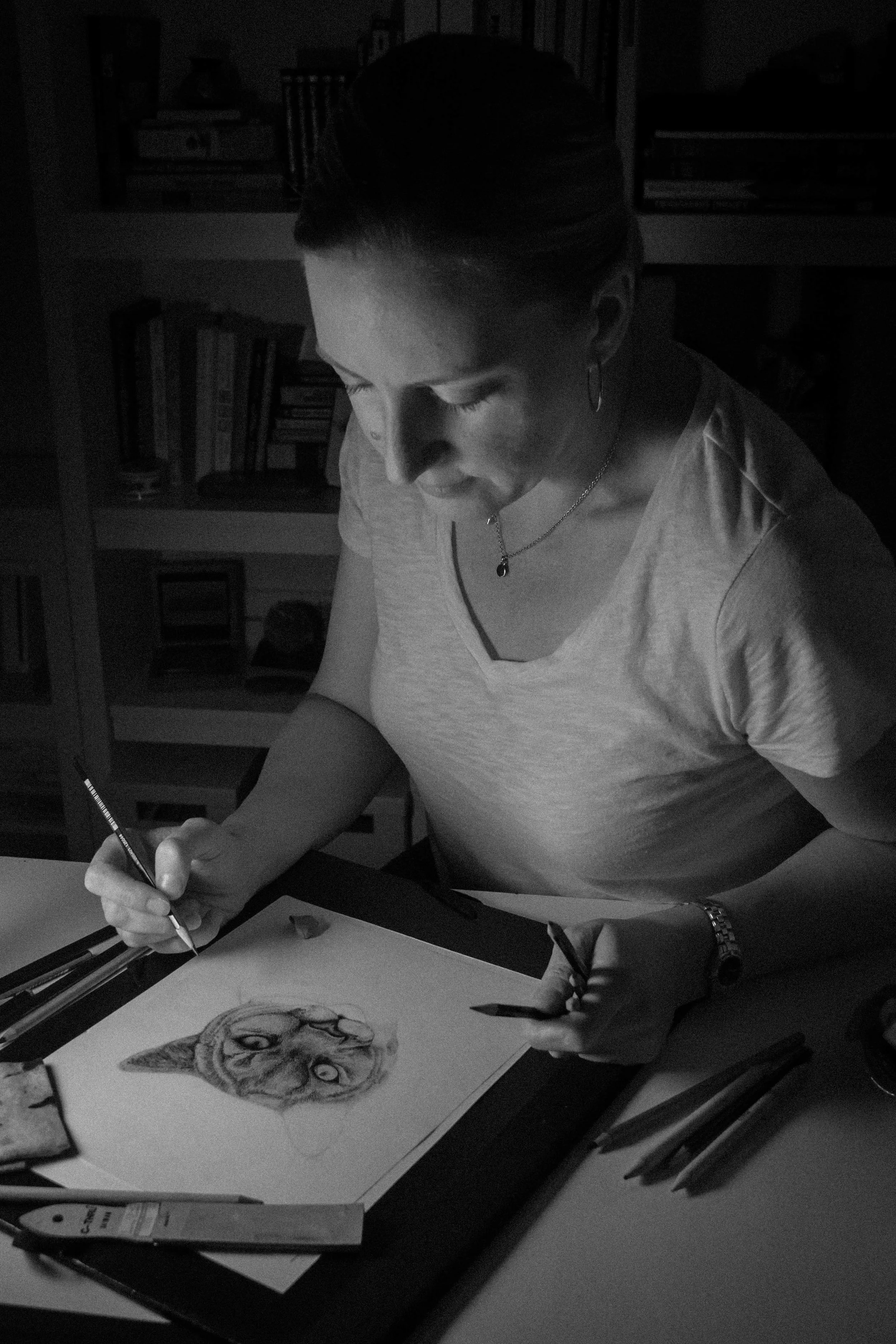 Kim Douglass is a self-taught artist who has been drawing for as long as she can remember. Working primarily in pencil and oil pastel, her aim is to produce realistic images that bring attention to the fine details of her subjects. To her, drawing has always been a meditative process and a deeper way of "seeing." Her work can be found in private collections across the country.